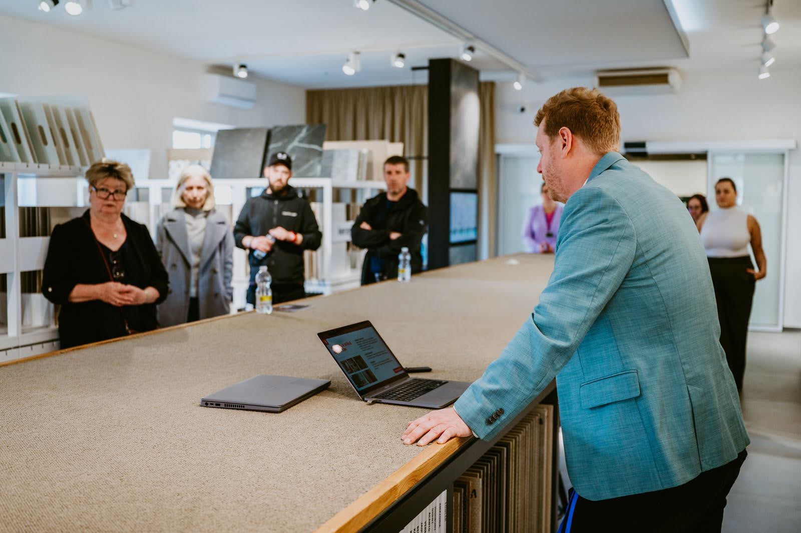 Ve čtvrtek nás čekal již známý program na showroomech Centra Kaštanová a program obohatila společnost Kronospan s praktickými venkovními technologickými ukázkami.