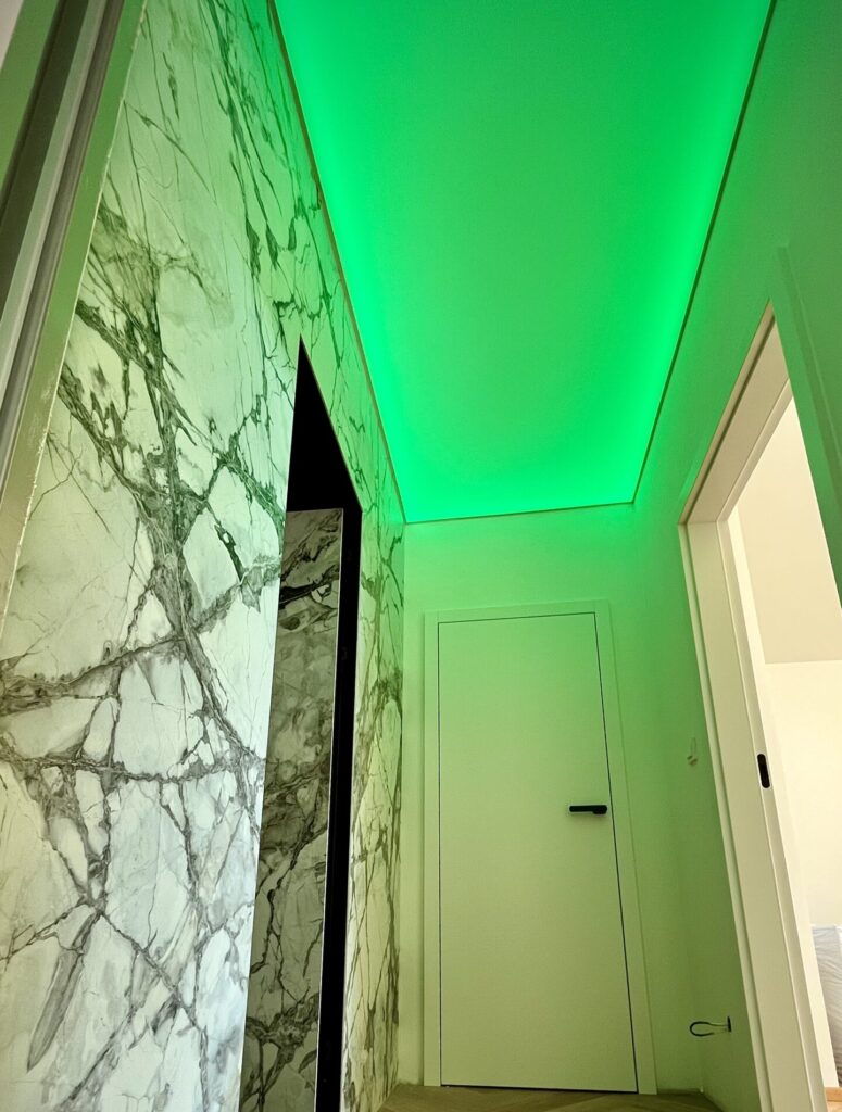 Napínané stropy jsou inovativním osvětlením používaným zejména v interiéru. Jeho výhodou je, že vytvoří dokonale hladký podhled, pod který můžete schovat původní strop. Můžete si vybrat napínaný strop matný i lesklý, podsvícený širokou škálou barev.